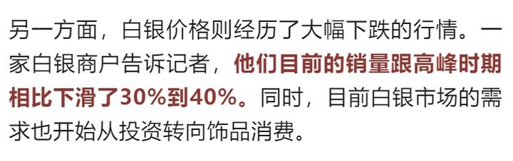 广东深圳水贝白银商户 柳飞:之前大家在抢银条的时候,不单只是银条,只要大克重的手镯、银器,大家都在买。现在就比较理性了,之前可能投资需求居多,现在就是以装饰为主。
