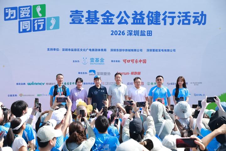 4月26日上午,壹基金为爱同行·2026深圳盐田公益健行活动在东部华侨城巨石广场鸣枪开走。本次活动由深圳市盐田区文化广电旅游体育局、深圳东部华侨城有限公司、深圳蓄能发电有限公司支持,深圳壹基金公益基金会主办,可口可乐中国联合发起,深圳市登山户外运动协会、悦跑圈联合主办,3000名队员和志愿者参与。