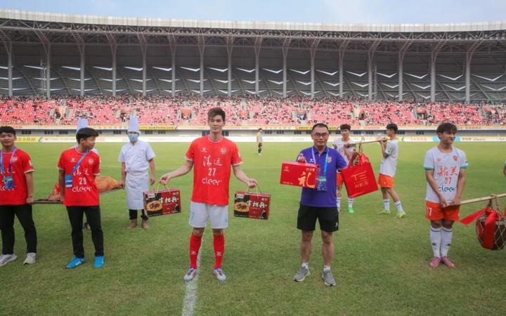 中场休息期间,文体展演、手信互赠等环节同步开启。清远送上皮脆肉滑的洲心烧猪、英德红茶等特色好物;韶关则回赠堆花米酒、宰相粉等地方特产。两地以礼相待、以情相交,既践行了“友谊第一,宵夜第二,比赛第三”的精神,也续写了“同饮北江水、共枕南岭脉”的深厚情谊。