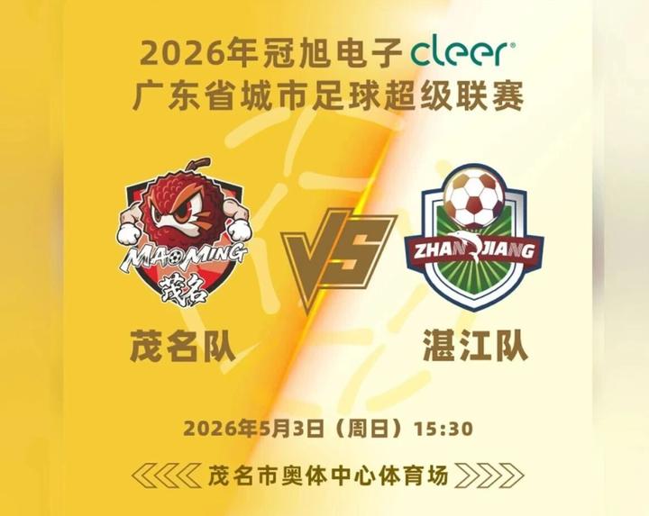 广东省城市足球超级联赛(下称“粤超”)持续开战,茂名队在首轮与云浮队以0∶0比分握手言和后,5月3日将继续坐镇主场迎战湛江队,这也是粤超联赛首场粤西德比战。本场观赛门票预约已于今日14时正式开放,诚邀广大市民、游客趁着五一假期,齐聚茂名新城奥体中心体育场,共赏绿茵精彩对决。