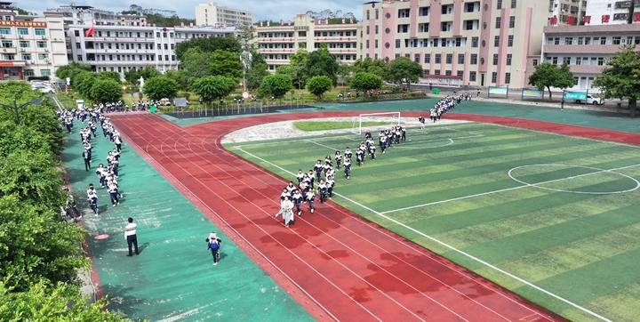 上午11时许,演练模拟广东省河源市龙川县枫树坝附近发生5.2级地震,赤光中学教学楼震感明显。学校迅速启动应急预案,各班学生在老师指挥下立即蹲伏于课桌旁进行紧急避险。随后,全体师生沿预定路线安全、有序、快速撤离至指定安全区域。整个演练过程组织严密、响应及时、配合顺畅,达到了预期效果。