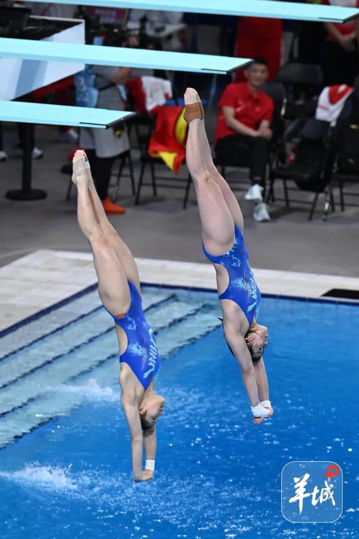 11月6日上午,广东奥体中心游泳馆,第十五届全运会女子双人10米台预赛在这里举行。广东组合全红婵/王伟莹以297.54分的成绩排名第三,顺利晋级当天18时举行的决赛。