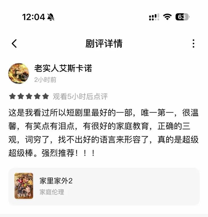 区别于多数短剧依赖强冲突的叙事套路,《家里家外2》的生活流叙事赢得广泛赞誉。当陈海清说出“日子再难,有家在就有奔头”,蔡晓艳默默递上省吃俭用积蓄的创业资金时,弹幕涌现“这才是真实的中国式家庭”,“看哭了,像极了我爸妈的奋斗史”等共鸣。观众评价其“专注互相扶持的温情,短剧竟能将日常拍得如此动人”,印证了生活流内容在短剧市场的强劲吸引力。