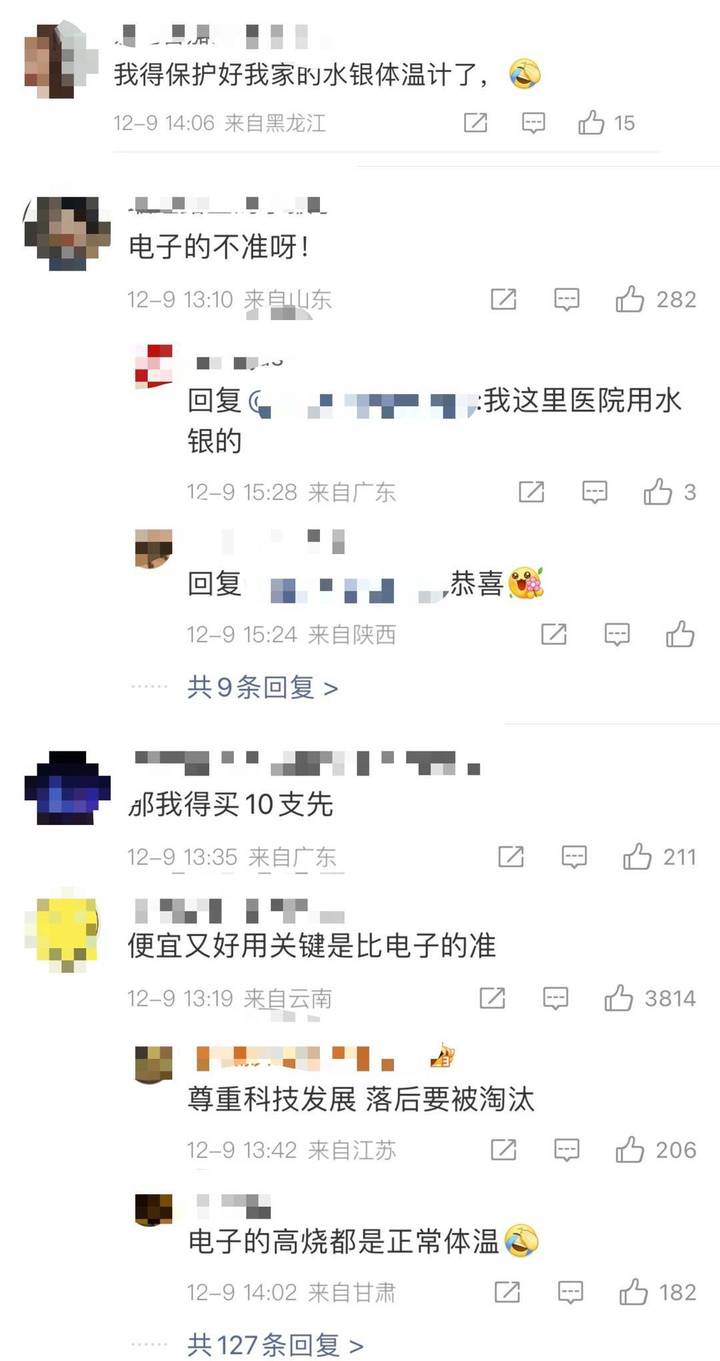 除了价格差异,大家对水银体温计和电子体温计的使用体验也不尽相同。不少网友表示亲测后感觉“电子的不准”,也有人表示还是更习惯“便宜又好用”的水银体温计。