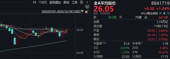12月19日,本周最后一个交易日,A股三大指数集体上涨,沪指更是盘中一度收复3900点。截至收盘,沪指涨0.36%,收报3890.45点;深证成指涨0.66%,收报13140.21点;创业板指涨0.49%,收报3122.24点。全市场全天成交额17487亿,较昨日放量719亿。个股与指数形成正向联动,全市场超4400只个股飘红,市场赚钱效应凸显。