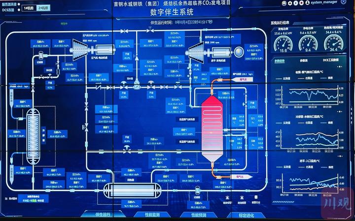 “超碳一号”示范工程是中核集团中国核动力研究设计院(简称核动力院)与济钢集团国际工程技术有限公司(简称济钢国际)、首钢水城钢铁(集团)有限责任公司共同推进的全球首套2×15兆瓦超临界二氧化碳烧结余热发电项目。相比现役烧结余热蒸汽发电技术,“超碳一号”的发电效率提升85%以上,净发电量提升50%以上,相当于每年多发7000万度电。同时,由于系统简化、设备减少、运维便利,场地需求减小50%。