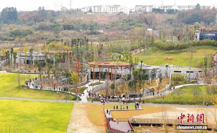 除了贴心的熊猫“居所”,园区还配备完善的公众服务设施:步行游览栈道蜿蜒穿梭、岷山画廊与科普廊道传递生态知识、自然教育中心开启研学之旅。依托丰富的原生水系,园区融入海绵城市建设理念,打造出“雨水漫流、花草相映”的自然景致,生动还原岷山山系原生溪谷风貌。