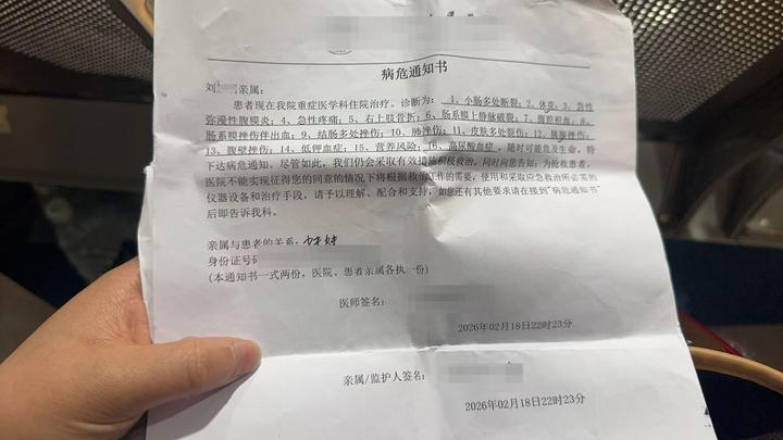 ▲刘某某的病危通知书
