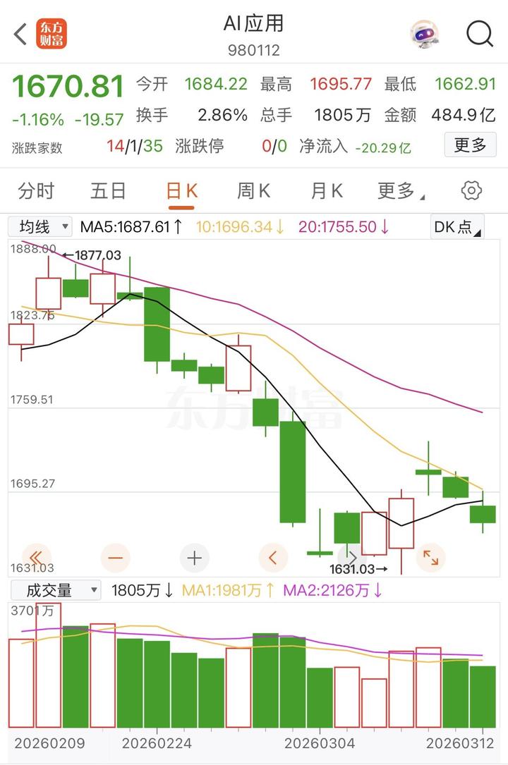 昨日的股市分析中提到,今年以来,化工与AI应用两大板块成为市场的主线,但二者处于“跷跷板”的两端。今日的市场再次印证了这一说法,AI应用板块只有早盘时段活跃在水平线上,随后便一直在“水下”活动,全天下跌1.16%。
