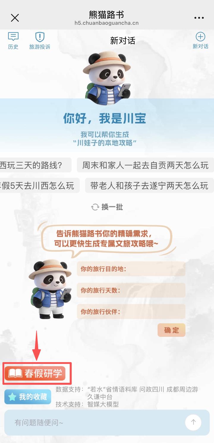 即可打开“熊猫路书”文旅攻略智能体