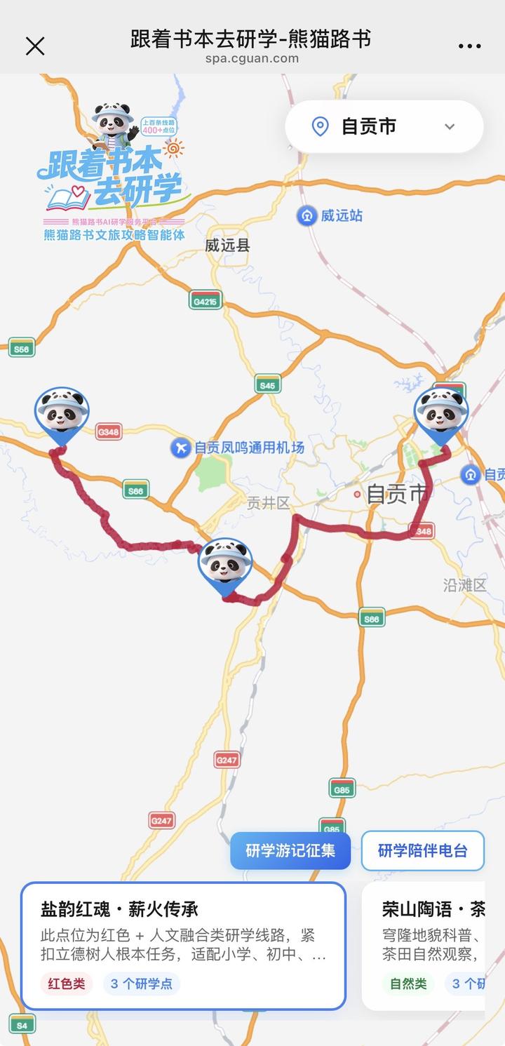 点击熊猫路书主页“春假研学”专题,研学地图展开,省内各市州研学路线、点位可一键查看。研学路上有想分享的心得体会,可到“研学游记征集”区投稿,将有机会在川观新闻刊发。研学途中还有优质有声内容陪伴,点击“研学陪伴电台”,一起收听《少年听四川》电台里的四川故事。
