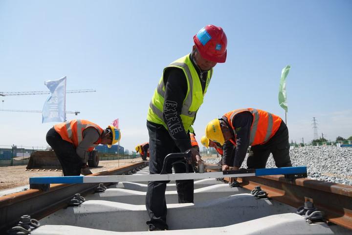 一南一北,成德线两个铺轨基地同时按下“启动键”。“一节节轨排,最终要铺设组成成德线全线的轨道。”四川成德轨道交通有限公司轨道专业工程师黄钊介绍,成德线全线需铺设轨道152.13公里,列车设计时速达到160公里,线路越长、列车越快,对轨道的平整度要求就会更高。“我们在铺轨中引入高精度全站仪、电子水准仪与轨道精测小车,同步采集轨距、水平、高低等参数,通过智能分析软件动态纠偏,从源头减少误差累积,轨道铺设精度可以控制在2毫米以内。”黄钊说。