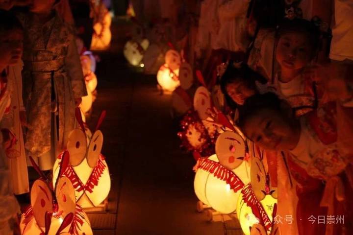 大兔灯领头引路,小兔灯紧随其后,队伍穿梭在新街、双凤街等古镇街巷,星星点点的灯光宛若流动的星河,照亮青瓦白墙的川西民居,也照亮了孩子们纯真的笑脸。今年,机器人“舞蹈家”的加入更将现场气氛拉满,灵动舞姿随乐而起,引得观众阵阵欢呼。