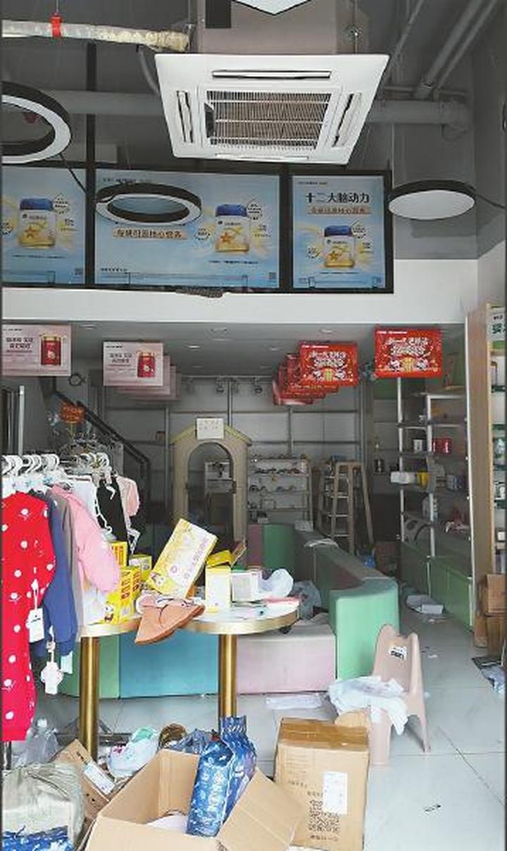 3月31日上午10时,记者跟随10余名充值消费者来到涉事门店,只见店铺大门紧闭,店内货品已基本被搬空,只有一些空奶粉罐散落一地。据来到现场的消费者介绍,该店原招牌为“baby king婴之皇中德英伦城邦店”,现已更换为“英伦婴皇”。