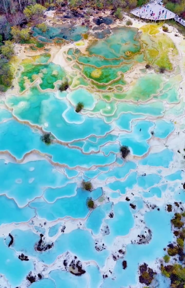 据悉,黄龙风景名胜区位于四川省阿坝藏族羌族自治州松潘县,是中国唯一保护完好的高原湿地,在一条由南向北逐渐隆起的山脊上,景区核心区域点缀着3000多个彩池,被誉为“人间瑶池”。