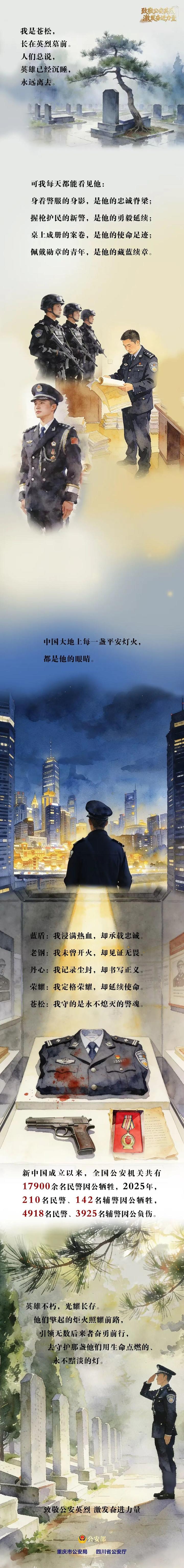 +订阅一件警服,一把配枪,一摞卷宗,一枚奖章,我们是公安英烈留在世间的心跳与目光。我们曾陪伴他们冲锋陷阵、守护百姓、追寻正义、践行誓言。如今他们虽已远去,精神却从未消散。无数藏蓝后继者,正接过这份滚烫信仰,让忠诚永续,护岁岁安宁。