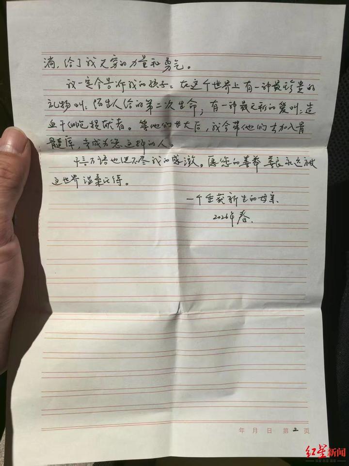 “亲爱的素未谋面的家人:当我提笔时泪水已模糊了视线。”前不久,这位自称“重获新生的母亲”在病房里写下了这封信。