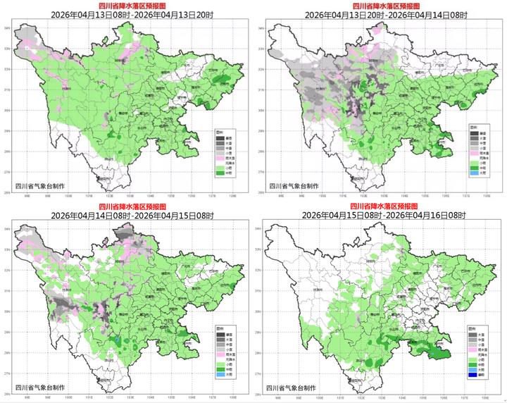 中央气象台预计,4月13日至22日,我国主要降雨区位于江南、华南以及西南地区东部等地,其中四川累计降水量有20~40毫米,局地50毫米以上。