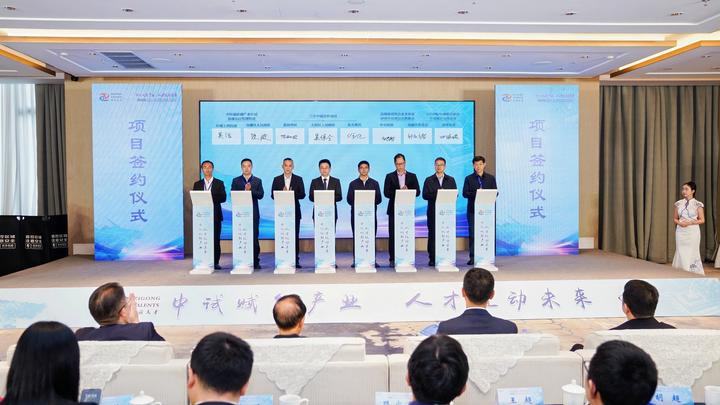 田海波(右一)与自贡高新区管委会签订中试合作协议。