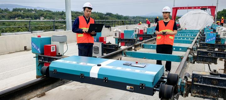 无砟轨道施工是高铁铺轨前的最后一道关键工序,施工精度要求高、工艺复杂,直接影响列车运行平稳性和乘客舒适度。施工现场负责人周伟介绍,项目部应用智能轨排精调机,采用“测量—计算—执行”全链路自动化闭环架构,可将轨排精调误差控制在0.3毫米以内。
