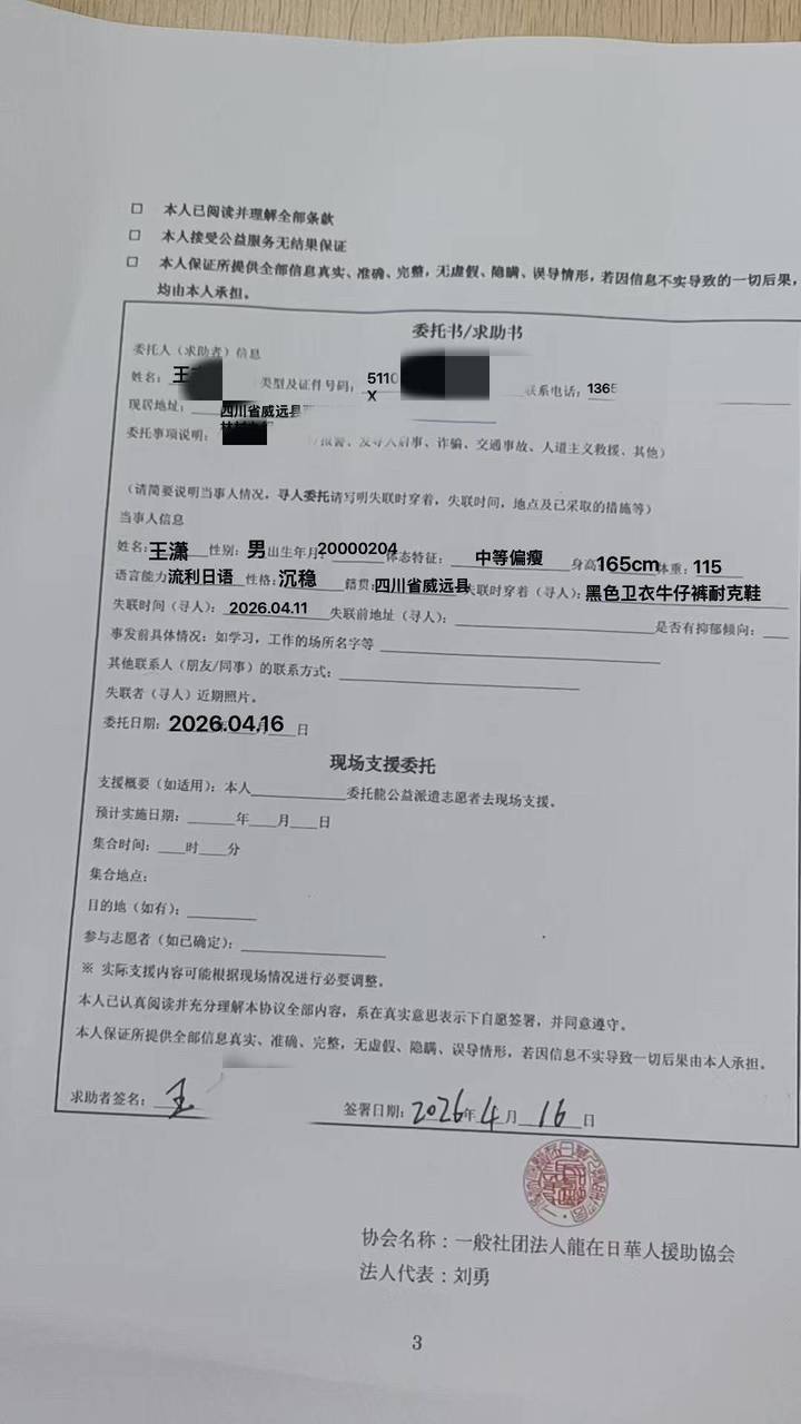 “我得知弟弟失联的第二天就去办护照,但外事民警提醒说,我一个人前往,比较担心我的安全,如果日本那边有什么消息再紧急帮我办理,送我过去。”王琪说。虽然人在国内,他们仍在想尽办法寻找王潇,包括向中国驻札幌总领事馆提交协助寻亲申请书,希望领事馆督促日本警方搜寻,并且联系到了当地华人组织协助寻人。