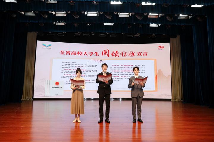 学生代表宣读《全省高校大学生阅读行动宣言》
