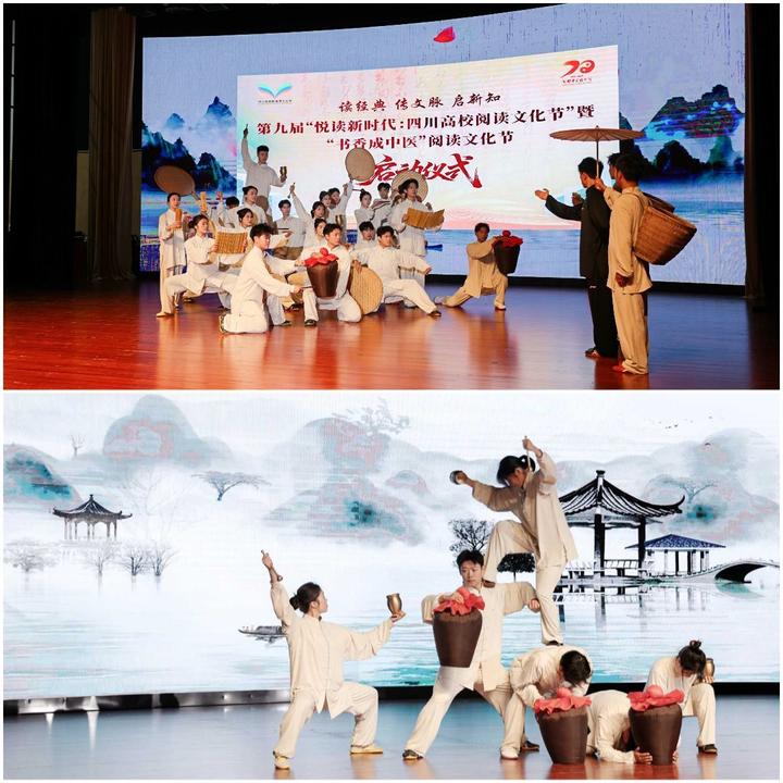 现场,西南财经大学社会发展研究院教授、博士生导师潘斌作《阅读中华传统文化经典的意义与价值》专题讲座。成都中医药大学的同学们带来的展演《源远流长》、经典朗诵《医道长河》等节目,将中医经典书简卷轴、中药炮制用具等元素融入舞台艺术当中,讲述从张仲景、孙思邈到屠呦呦一脉相承的医者仁心。