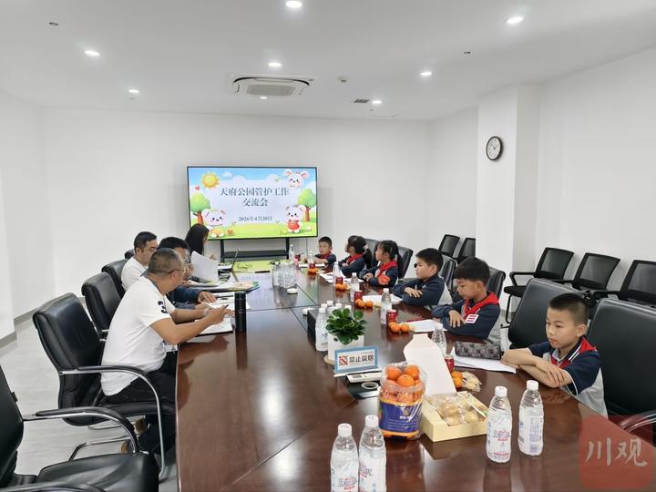 4月20日,四川天府新区第二小学三年级9班的公园文明烧烤调查小队,受邀到天投集团面对面交流,图片据受访者