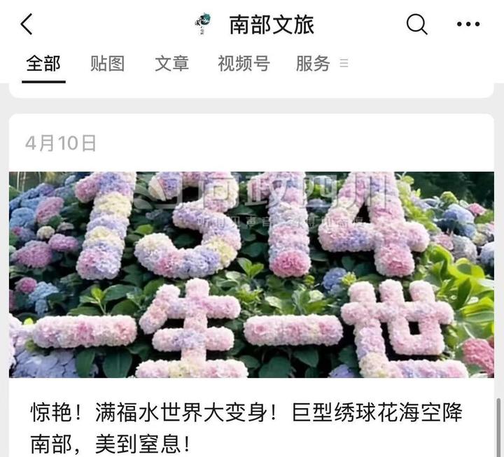 南部文旅公众号上发布的绣球花海宣传图,未标注网络示意图片