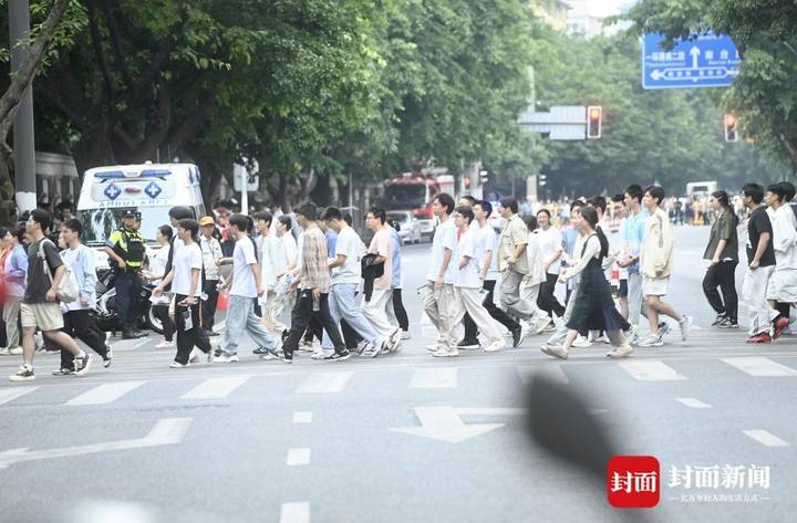 6月7日,2025普通高等学校招生全国统一考试开考。成都七中林荫街考点,考场外相关部门维持考场秩序,考生有序进入考场。让我们一起为考生们加油,祝他们旗开得胜!封面新闻记者 雷远东