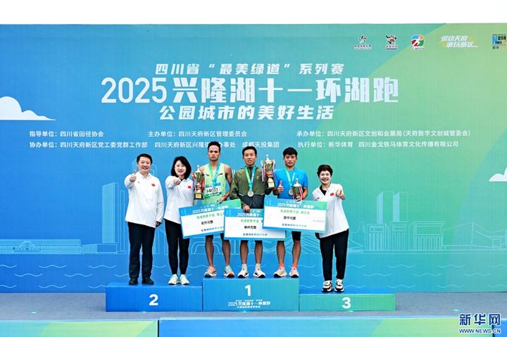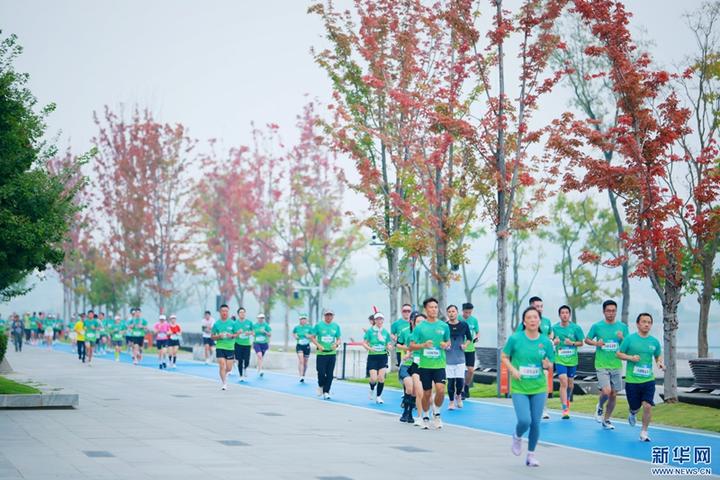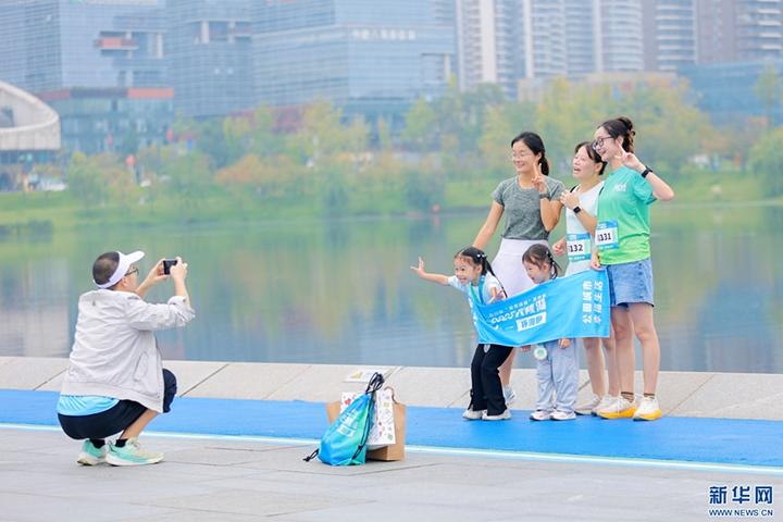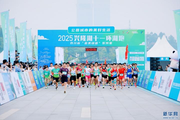 10月1日,四川省“最美绿道”系列赛・2025兴隆湖十一环湖跑,在湖滨广场鸣笛起跑。这场以 “公园城市的美好生活” 为主题的环湖跑,共吸引了来自全国各地的4000名跑者参赛,用脚步丈量城市绿意,用心灵感受生态之美。(组委会 供图)