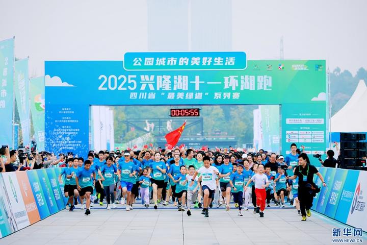 10月1日,四川省“最美绿道”系列赛・2025兴隆湖十一环湖跑起跑瞬间。