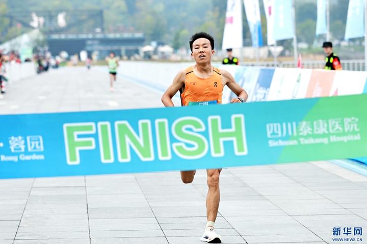 10月1日,竞速跑男子组冠军在比赛中冲线。