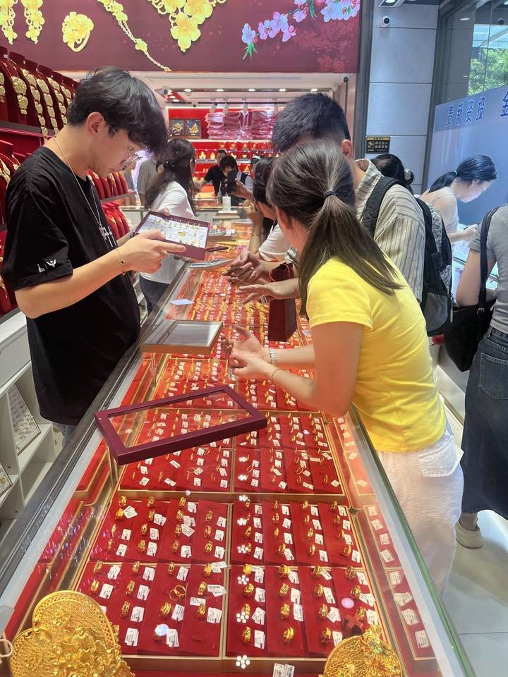 而这一玩笑的背后是商家对金价一路高歌猛进的感叹。10月8日,现货黄金站上4040美元/盎司,续刷历史新高。而有关工作人员给记者发视频显示,水贝市场柜台前挤满购金者,销售人员直言生意比之前还红火,“毕竟黄金买涨不买跌,这两天很热闹,买的人很多。”