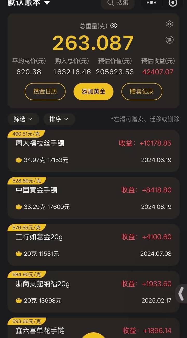 谈及与黄金的结缘,“雨雨雨”告诉记者,自己从2023年就养成了攒金的习惯:“手里有点闲钱就想买黄金,你看这么多年下来,黄金价格一直是上涨的,作为避险资产特别让人安心。”