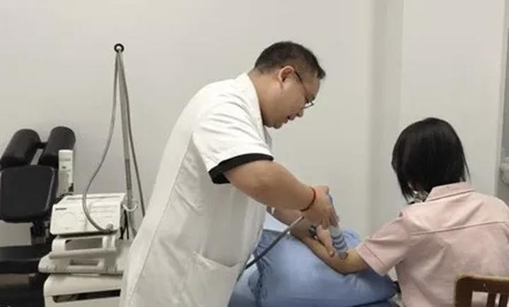 成都市第三人民医院康复医学科治疗师为患者进行冲击波深层修复。