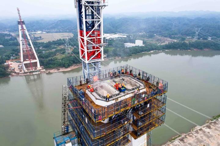 虎渡溪岷江特大桥主塔顺利封顶