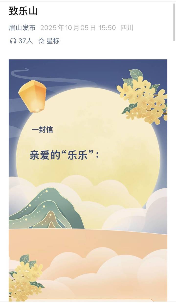 10月5日,眉山轻唤“亲爱的乐乐(乐山)”,称两地虽隔岷江,却始终心手相连,眉山的蟆颐观与乐山的麻浩崖墓,共同勾勒出汉唐时期蜀地文明的繁盛图景。乐山以凌云大佛镇守三江,眉山以三苏祠传承文脉,两座城市同根同源,共同书写着巴蜀大地的历史长卷。除了地域文化接近,两座城市更是在交通发展、水域治理、产业布局等方面始终呼应共进,以协作精神延续古嘉州与眉州的时代新篇。