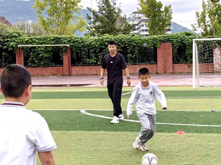 下午3点整,上课铃响起。孩子们来到足球场,列队、热身、控球、传球……张恒在一旁示范、指导,孩子们的动作不算标准,但脸上始终洋溢着笑容,这是足球带来的快乐。