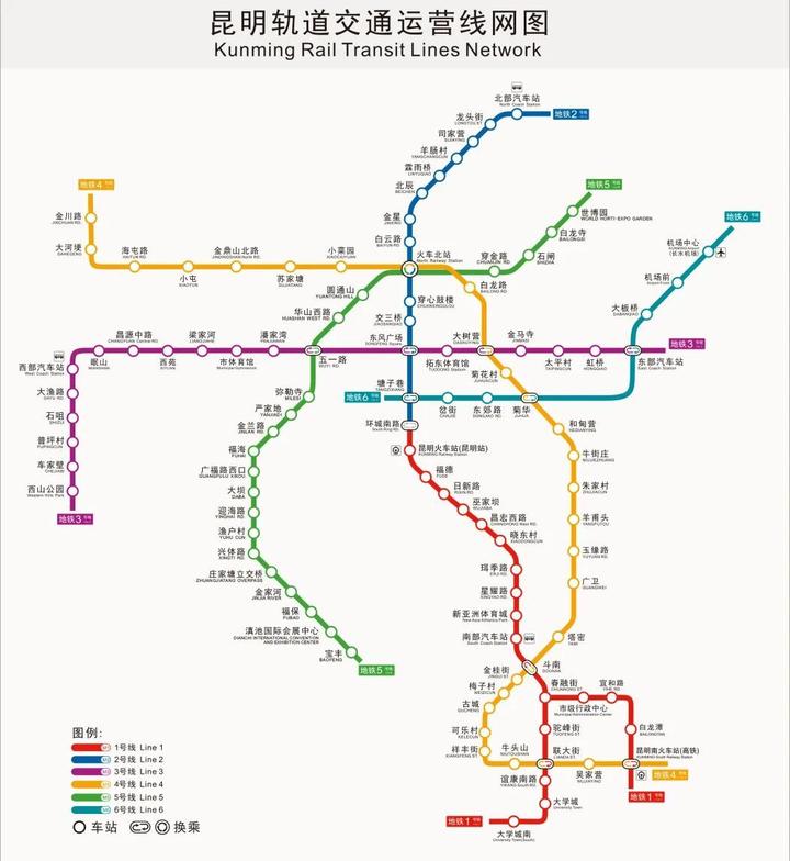 昆明地铁微信公众号点击菜单栏【便.出行→出行导航】可以查看可缩放的高清线路图。输入起始车站、目的地车站,系统直接算出最短路线,几号线、换乘点、票价、耗时全清晰。