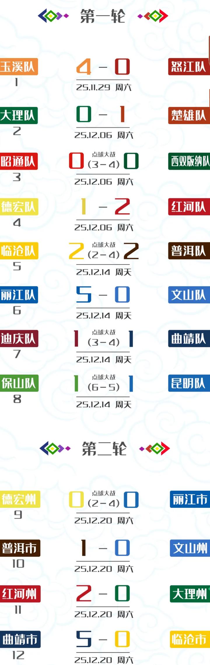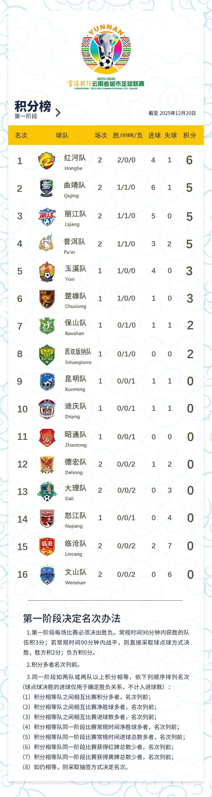 云南网编辑综合整理自云南省城市足球联赛小程序、滇超联赛等