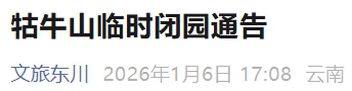 恢复开放时间将根据天气转好情况及道路安全评估结果另行确定,相关信息将第一时间通过东川文旅投官方抖音号、微信公众号、视频号等渠道发布,请密切关注并合理调整出行计划。