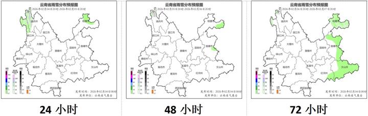 迪庆州北部、怒江州北部、昭通市北部的高海拔地区阴有小雪或雨夹雪,昭通市南部、曲靖市、文山州、红河州东南部多云转阴有分散小雨,其他地区晴间多云。