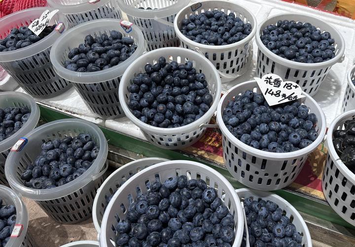 随后,记者又走访了龙头街菜市场。这里同样时令水果供应充足,且因地处城郊、租金成本较低,价格相比市区市场更为亲民。在蓝莓摊位前,果子按大小分级:品质最佳的精品大果每公斤110元,中等大小的每公斤85元,最小的则仅售45元一公斤,性价比十分突出。其他时令水果的价格也普遍低于市区,吸引了不少周边居民专程前来采购。