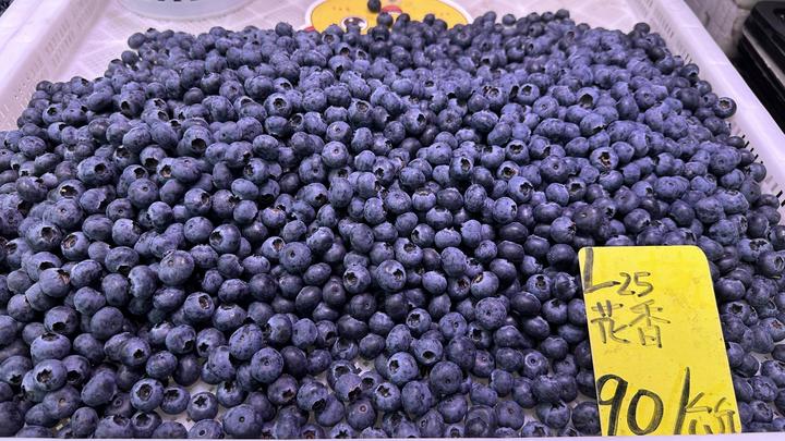 记者了解到,市场内的蓝莓主要根据果径大小分级定价,以满足不同顾客的需求,每公斤价格在60元至130元之间。其中,果径超过25毫米的超大颗花香蓝莓,因颗粒饱满、香气浓郁,价格可达每公斤140元至150元,成为注重品质的市民和游客的首选。此外,部分摊位还销售特价尾货蓝莓,一筐约1.1公斤,仅售50元。摊主介绍:“这批是前几天到的货,表皮稍微有点皱,但个头和口感都挺好,性价比高,买的人也不少。”