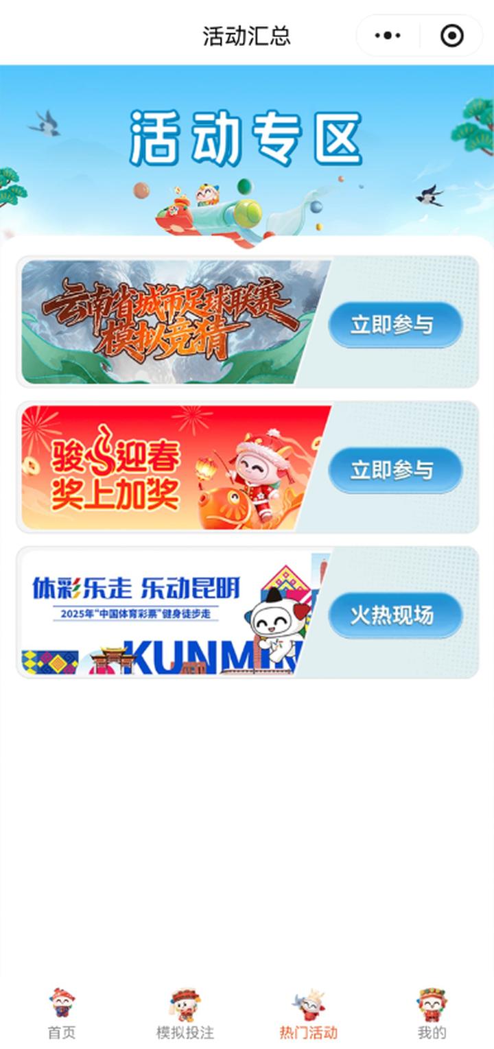 方式一:微信搜索“云南体彩小程序”,可从首页轮播图或热门活动模块进入活动;