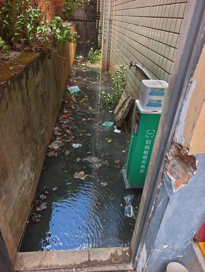 小巷道被黑色污水淹没