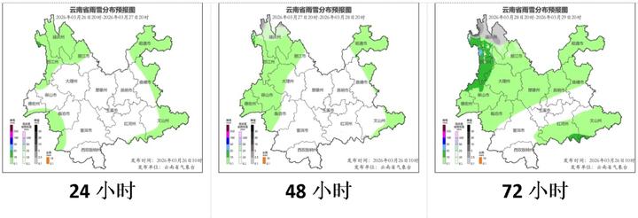 3月27日20时至3月28日20时:迪庆州北部、怒江州北部阴天间多云有小到中雨,高海拔地区有小到中雪,迪庆州南部、怒江州南部、丽江市西部、大理州西部、保山市、德宏州、临沧市西部多云有阵雨局部中雨,昭通市、曲靖市东部、文山州东部和南部多云有分散阵雨,其他地区多云间晴。