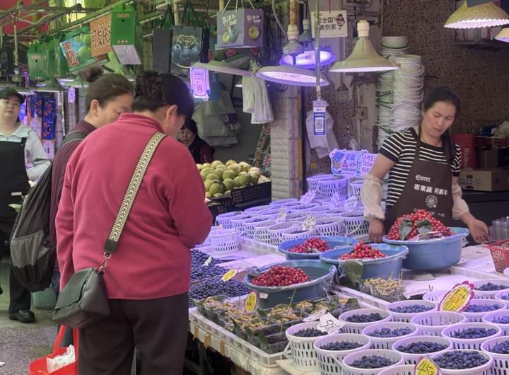 在篆新农贸市场,多家水果摊前的一抹抹嫣红格外惹眼,樱桃摊位前询价、选购的市民络绎不绝。每公斤的价格普遍在70—80元之间,经营水果摊多年的陈先生告诉记者:“樱桃上市才四五天,量比较少,因此价格居高不下。”尽管售价不菲,仍有不少市民驻足挑选,只为抢先品味这一口春日的酸甜。
