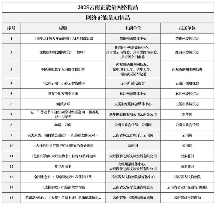 云南入选2025中国正能量网络传播AI精品案例作品